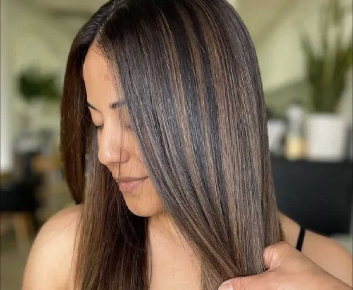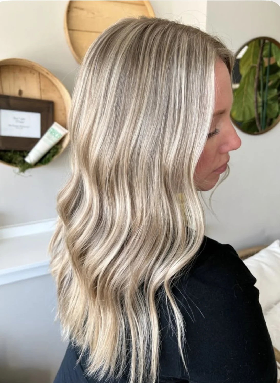 Balayage is a highlighting technique where color is hand painted onto the hair. Giving you a more natural sun kissed look and a low maintenance grow out. Balayage is spaced out between your natural color creating contrast in the hair.